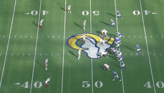 From the end zone angle, you can see another element of L.A.’s game plan that they’ll need to utilize again on Sunday. Both the running back and tight end chipped the 49ers’ edge rushers: