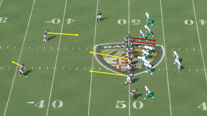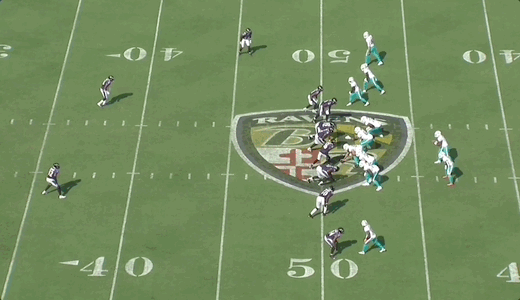 Miami faced a 3rd-and-10. This time, they dressed up the play a bit differently to keep the Ravens off the scent.