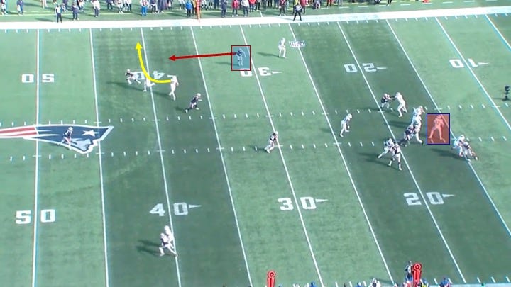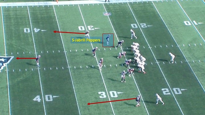 The Bills would again run the concept off of play-action. The Patriots played 3-deep, with Peppers as the flat-defender to the strong side: