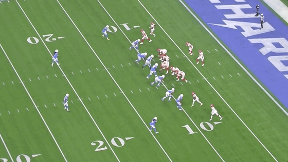 The Chargers played right into his hands by utilizing man coverage that created advantageous 1-on-1’s for the Chiefs. The pass rush also did itself no favors down the stretch as Chargers D-linemen made absolutely no effort to keep Mahomes in the pocket with the path of their pass rushes: