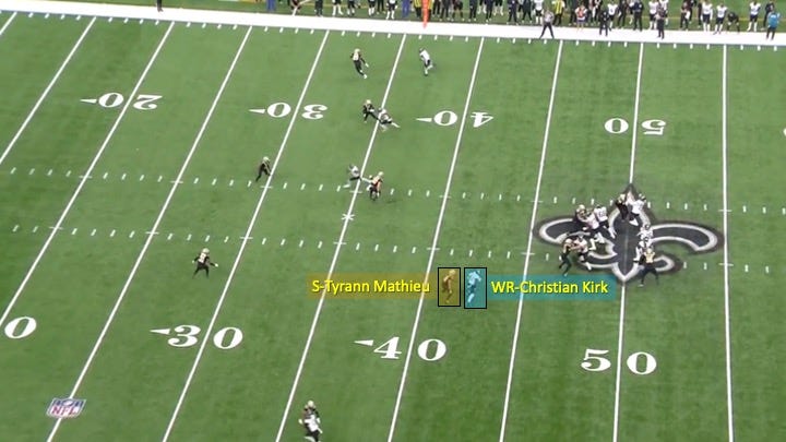 Kirk had a lot of space to maneuver and ran a great route to win vs Mathieu, leaving him in the dust on the way to the go-ahead TD: