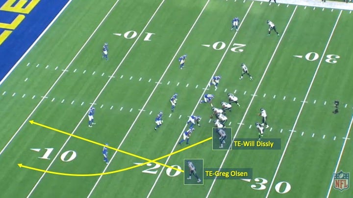The design of the play worked just like they drew it up, with Greg Olsen’s route eating up the cornerback and Will Dissly’s wheel breaking wide open on the outside: