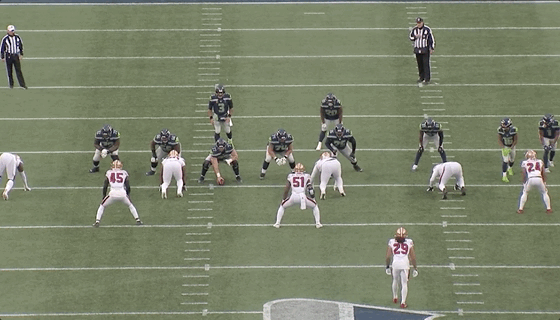 Below is another example. This was Week 13 last season against the 49ers. First, look at this play from the end zone angle: