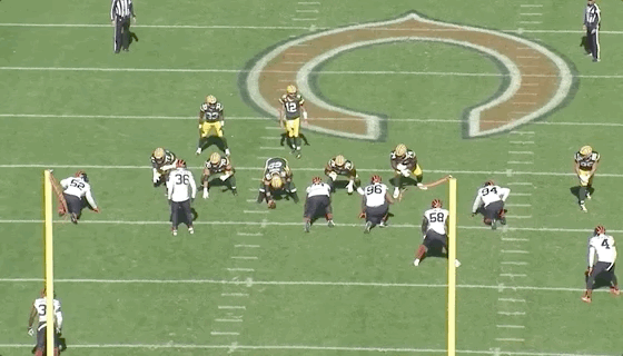 Mack has operated pretty comfortably throughout his career when stunting inside into the heart of the offensive line, whether as the penetrator or the looper: