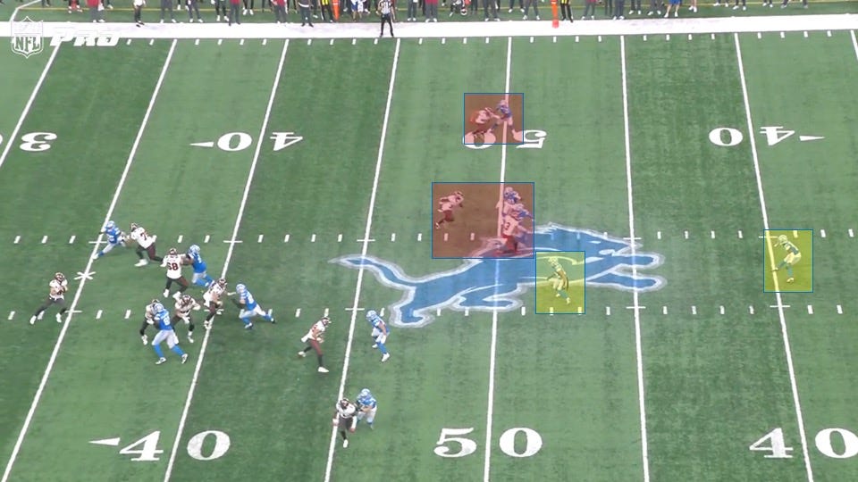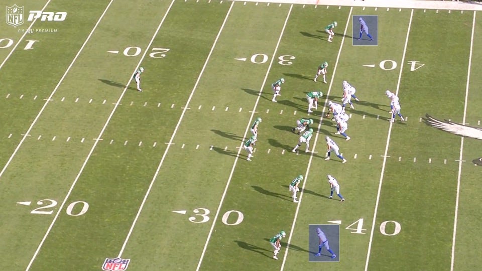 On this example, let’s focus on those outside cornerbacks. Pre-snap, one was aligned inside and the other was aligned outside of his receiver. But both would ultimately play with inside leverage, taking away the middle of the field and forcing their receivers to the sideline: