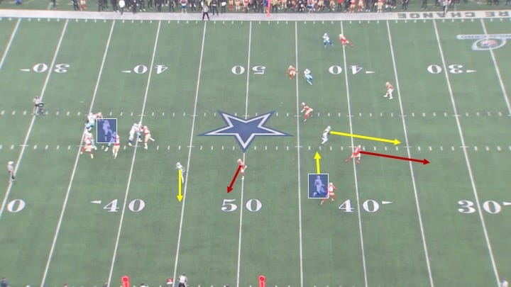 The combination broke down the coverage beautifully, leaving Dalton Schultz open over the middle: