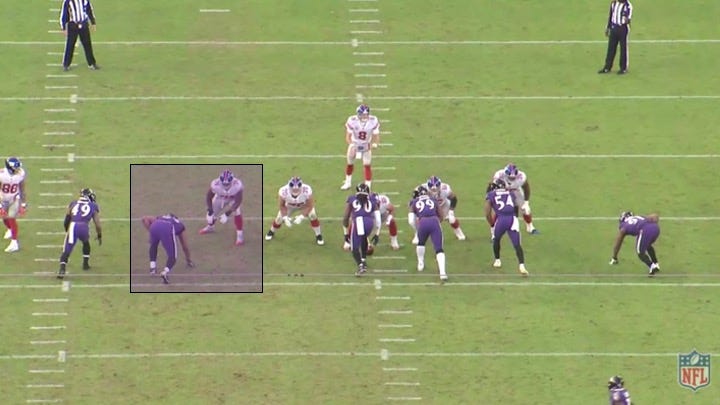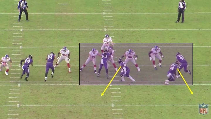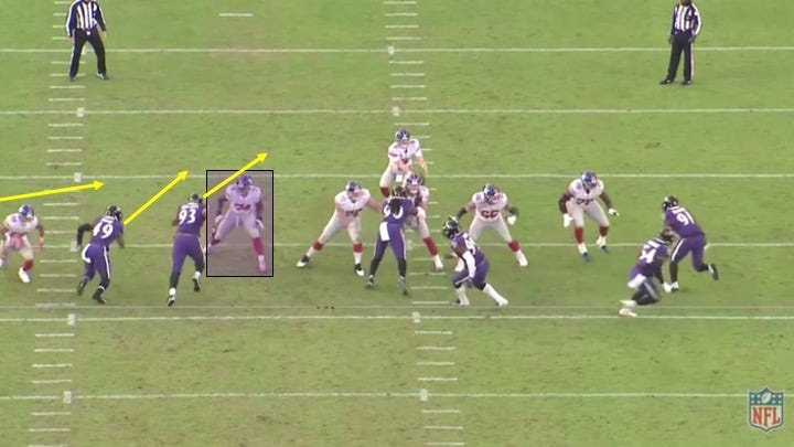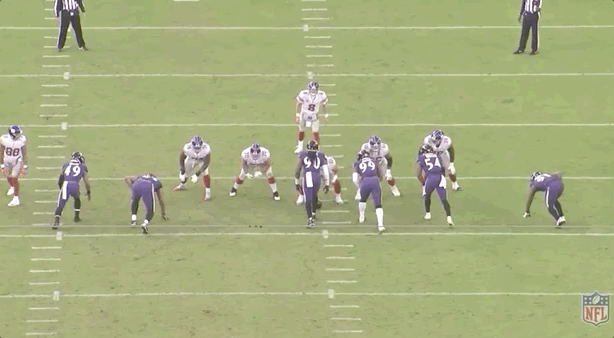 When it was all said and done, the Ravens were able to force the Giants into using 4 offensive linemen to block 2 pass rushers on one side, and 1 offensive lineman to block 3 pass rushers on the other. The results were predictable: