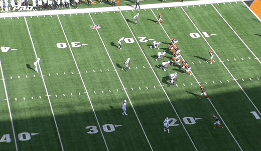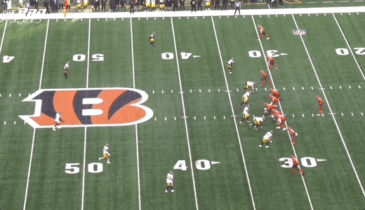 Burrow hung in the pocket and knew he needed to get rid of this ball perhaps a beat sooner than he would have liked with the pass rusher closing. And of course, his ability to anticipate allowed this completion to happen as he let it go before his receiver was clearly open. He put it in a perfect spot across the field to allow his receiver to run away from the defense: