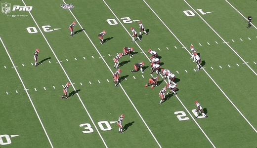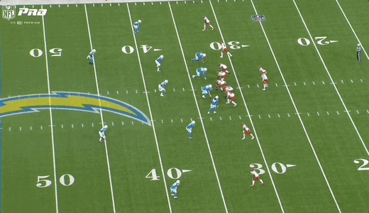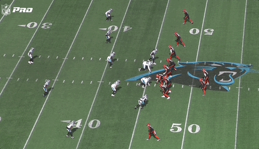 Here, his anticipation skills allowed him to process quickly in the face of a blitz and get the ball out in the nick of time: