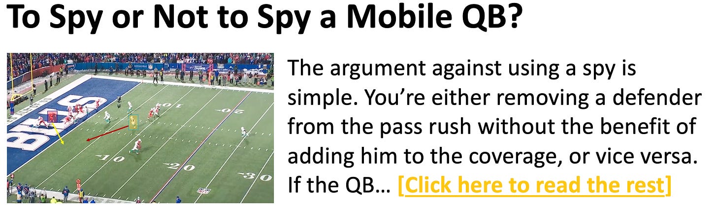 This week’s featured concept is about the decision to spy or not spy a mobile QB: