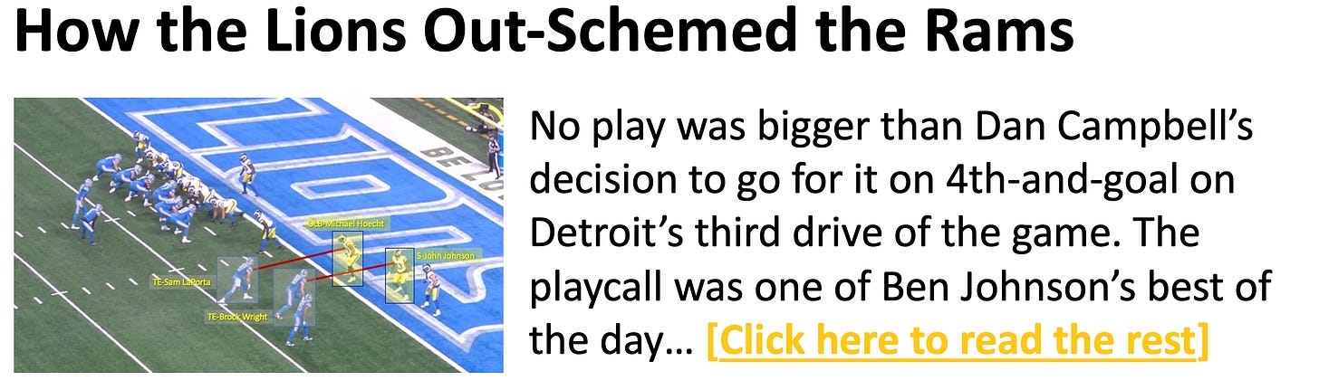 Football Film Room Weekly NewsletterWeek of January 15thNick KehoeJan 20, 202473ShareThis week at Football Film Room…SubscribePreviousNext