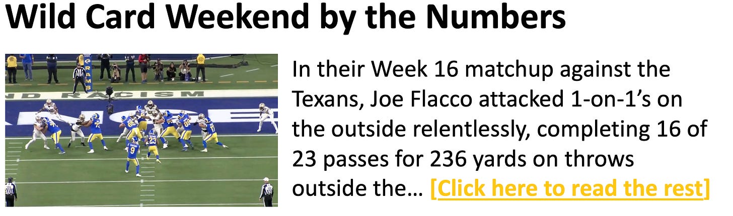 Football Film Room Weekly NewsletterWeek of January 8thNick KehoeJan 13, 2024861ShareThis week at Football Film Room…SubscribePreviousNext