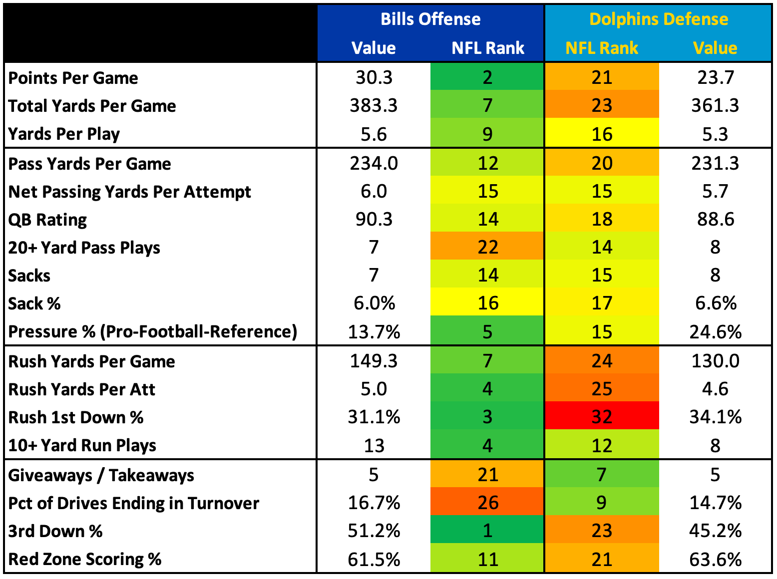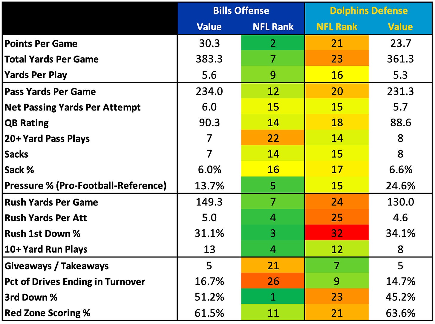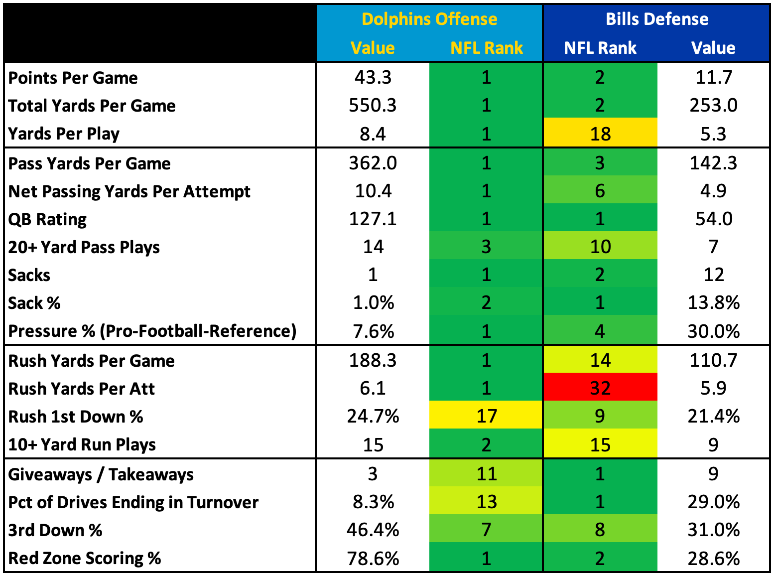 Under new defensive coordinator Jim Schwartz, this has been an aggressive unit. I’m not just talking about their blitz and man coverage frequencies (which both hover around the top-10). It’s a defense that is constantly attacking in everything they do. They tackle aggressively. They shoot gaps. They swarm the ball carrier. They have speed and talent at all three levels.