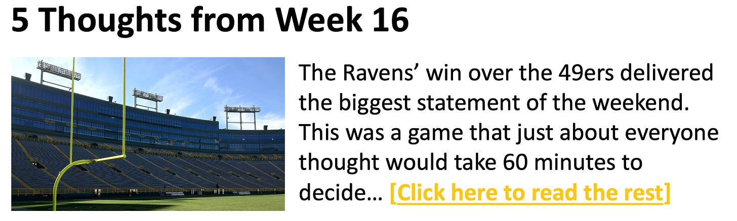 Football Film Room Weekly NewsletterWeek of December 25thNick KehoeDec 30, 2023821ShareThis week at Football Film Room…SubscribePreviousNext