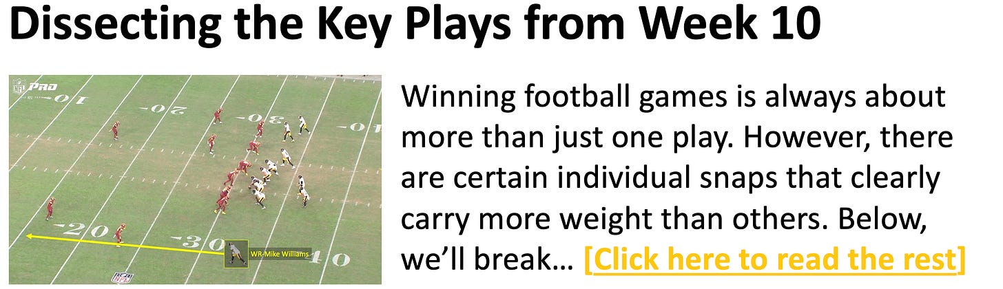 Our playbook has more than 50 breakdowns grouped by concept (e.g. passing game, running game, situational, coverages, pressures, etc.). Get a Founding Member subscription to access.