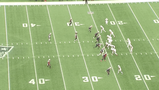 In the second quarter, Buffalo faced a 4th-and-2 from New England’s 34-yard line. Allen again showed poise, looking right initially before coming back to the left and hitting Stefon Diggs in the second window on a Shin route (Short-in):