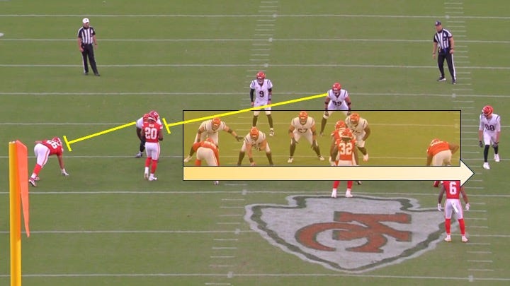 So Burrow moved his tight end in the backfield to that side before the snap: