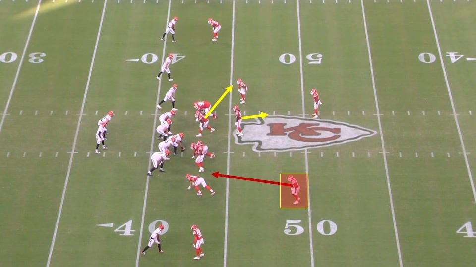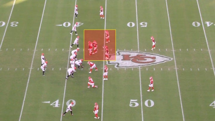 But the Chiefs wouldn’t bring extra defenders from that side. Instead, the pressure would come from an unexpected place.