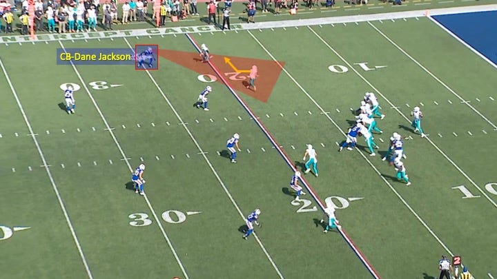 Had that ball not been thrown behind the intended receiver, Johnson would have been there to break up the pass. You can also see that Tua had an open receiver in the abandoned zone behind Johnson if he looked back in that direction.