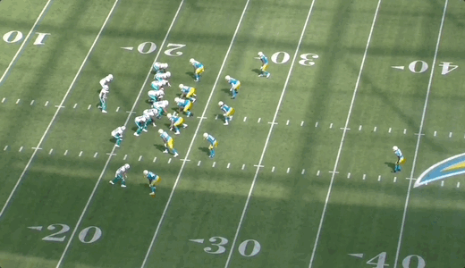 It makes more sense to initially focus on what the Dolphins did to create so many open receivers than to focus on what the Chargers did wrong (more on that below). Miami’s scheme itself created a lot of the yards.