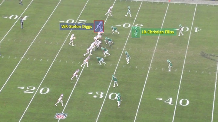 No defense is matching up in man coverage with a linebacker on Diggs. That told Allen that this was some kind of zone coverage.
