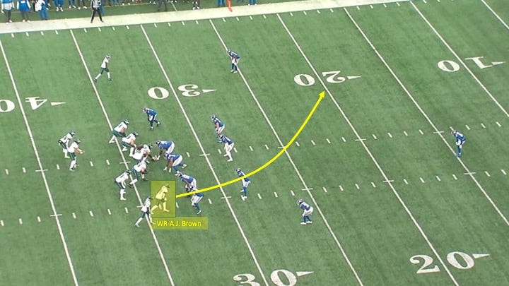 Initially, it looked like the Eagles had another deep-over route called from a tight-slot position, this time with A.J. Brown running it: