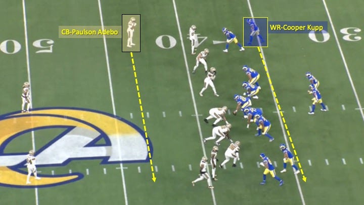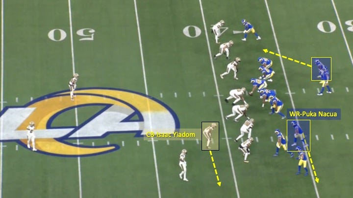 This was important because Nacua would be running a shallow crossing route. Having leverage to the inside would be critical: