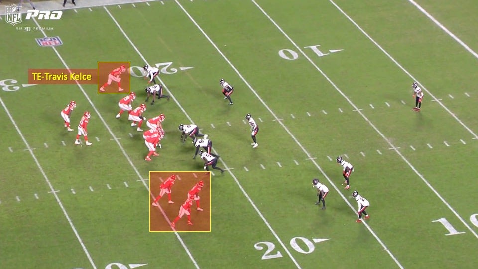 You could see it on this sack just before the end of the first half. The Chiefs faced a 3rd-and-5 and came out in that 1x3 formation they’ve relied on so much over the years with Travis Kelce iso’d to the back side: