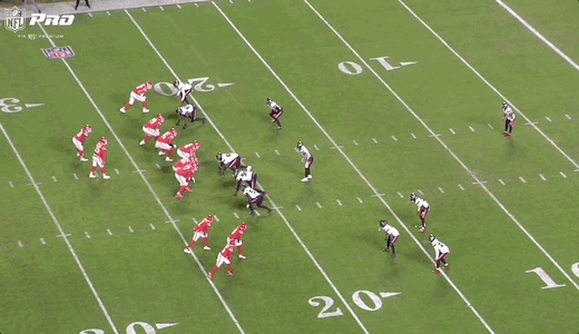 On this concept, the receivers on the right are meant to create picks, rubs, and, well… traffic for Brown’s defender to have to fight through (they used this play to clinch the AFC Championship game a year ago, FYI). The Texans were ready for it, though.