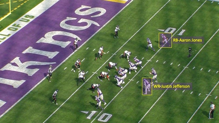 The alignment and quick snap got Justin Jefferson matched up on a linebacker (Azeez Al-Shaair), just as O’Connell had hoped: