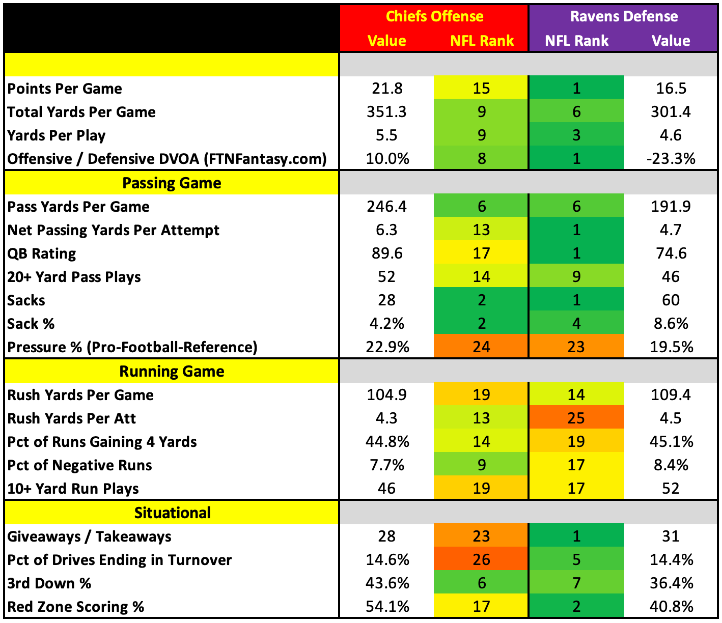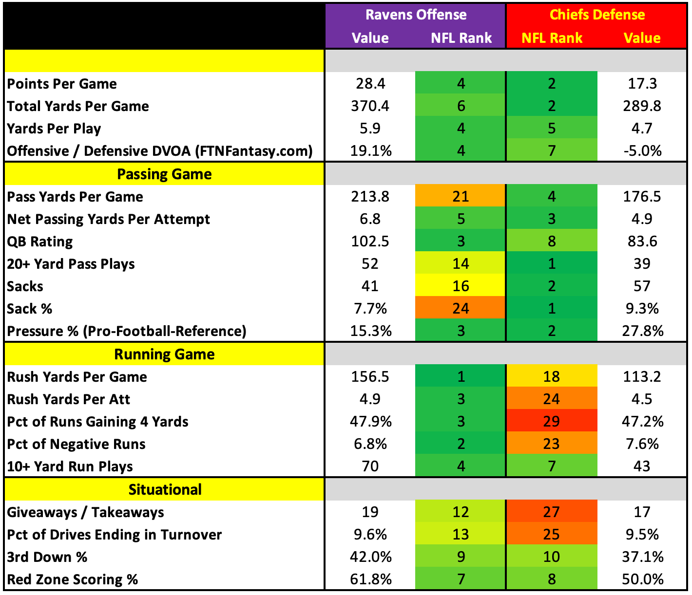 The 2024 NFL Season is upon us! One of the things we like to do at Football Film Room is give you a statistical preview of every NFL game based on team stats. We’re not comparing one offense to another offense since they’re never on the field at the same time. Instead, we’re taking a look at how each team’s offense matches up to that week’s opponent on defense, and vice versa.