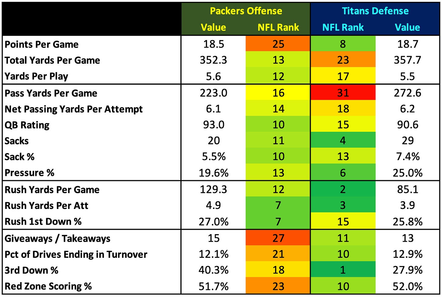 How They Match UpHow They Match Up - Week 11Nick KehoeNov 18, 2022∙ Paid2ShareTitans vs. PackersTo view all Week 11 head-to-head matchups, become a paid subscriber for just $0.99 per month. SubscribeBears vs. FalconsPanthers vs. RavensBrowns vs. BillsCommanders vs. TexansEagles vs. ColtsJets vs. PatriotsThis post is for paid subscribersSubscribeAlready a paid subscriber? Sign inPreviousNext
