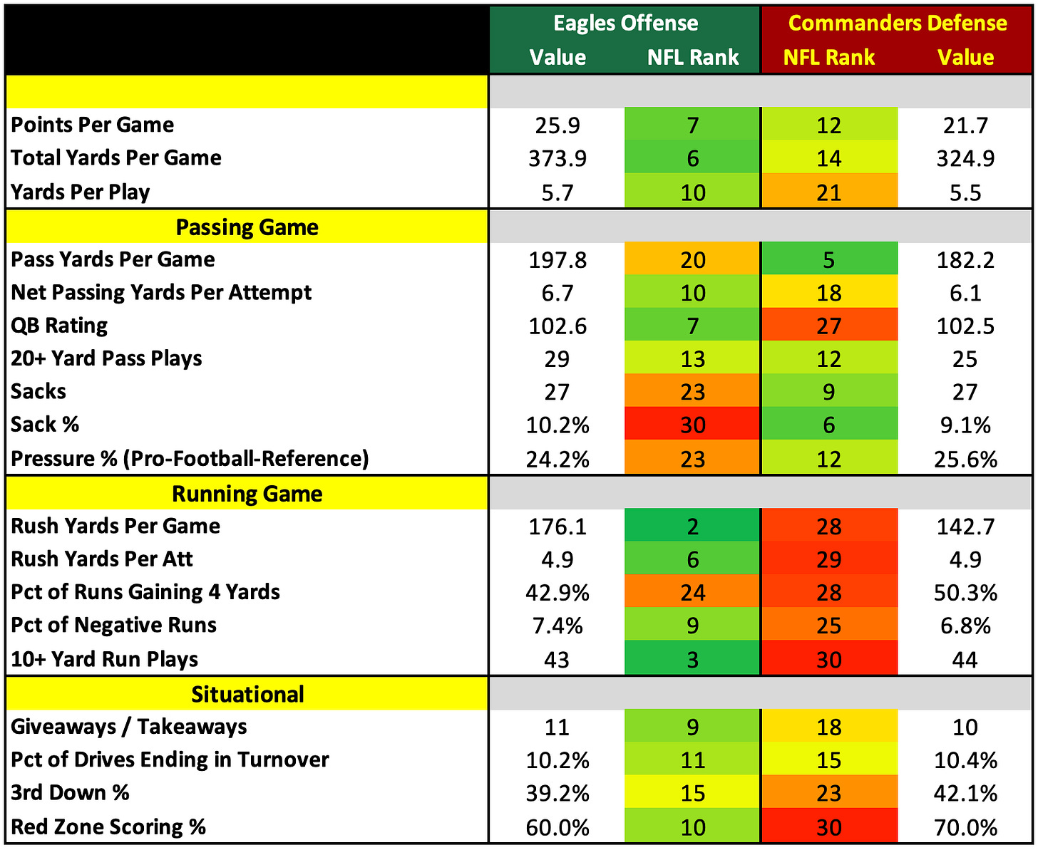 How They Match UpHow They Match Up - Week 11 (TNF)Thursday Night Football (Commanders vs. Eagles)Nick KehoeNov 14, 202432ShareCommanders vs. EaglesSubscribeCheck back tomorrow for the rest of the Week 11 games.PreviousNext