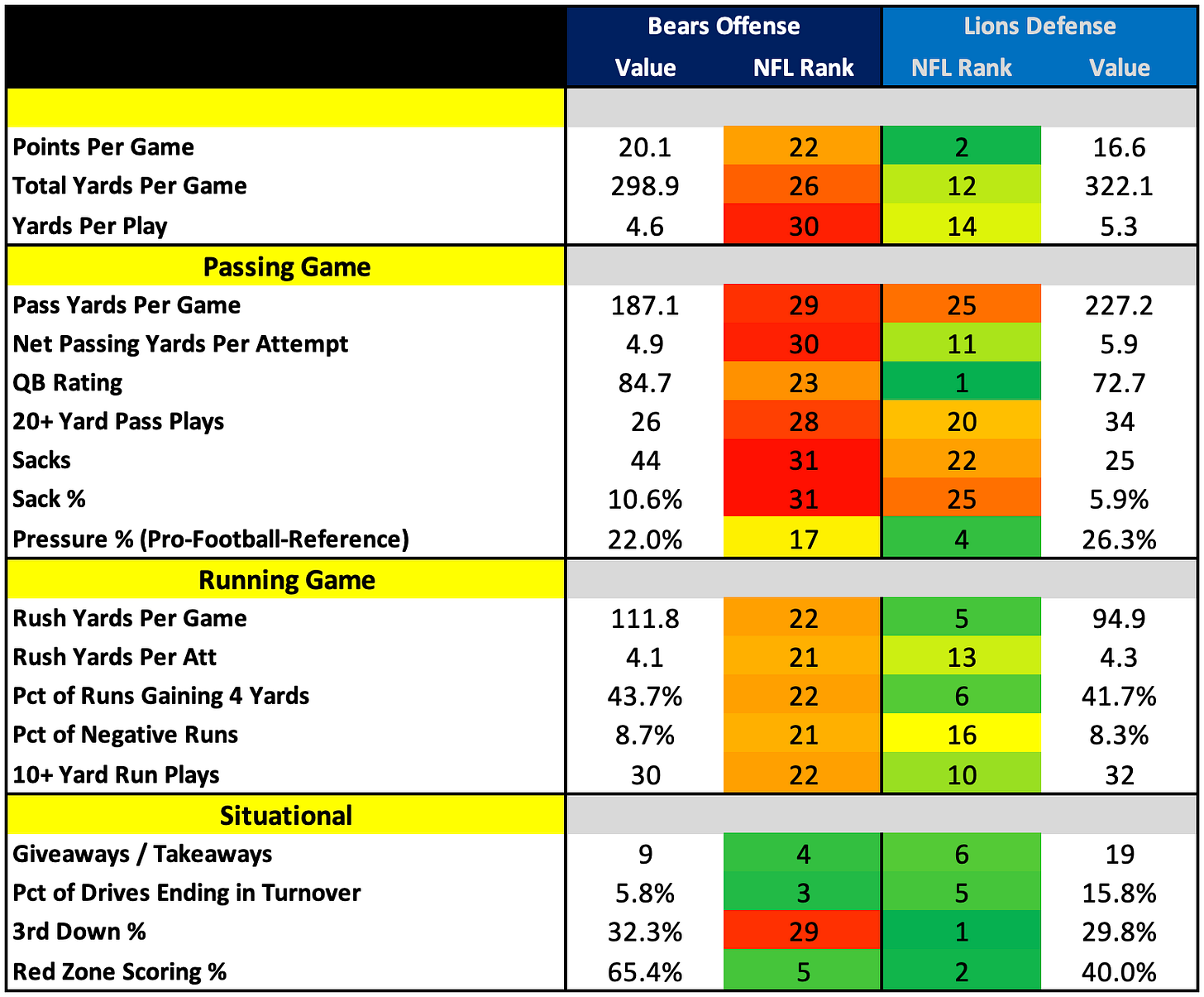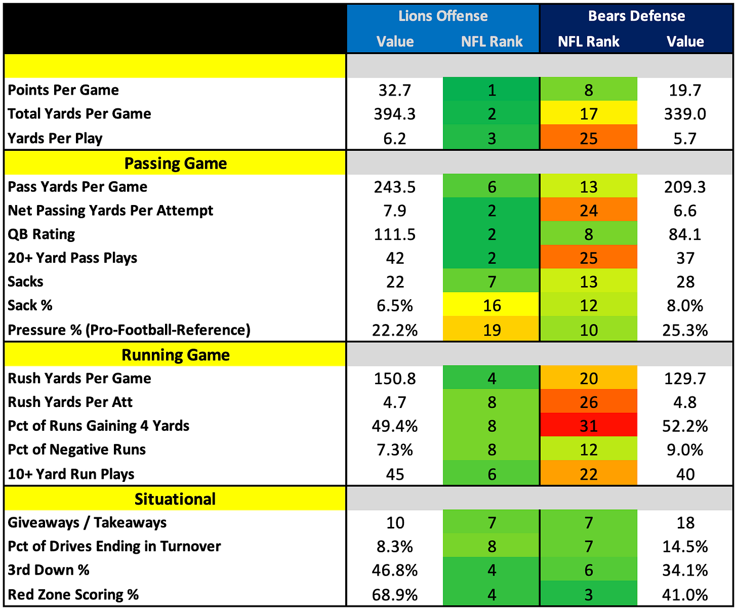 How They Match UpHow They Match Up - Week 13Nick KehoeNov 28, 2024∙ Paid43ShareBears vs. LionsTo see all Week 13 games, take advantage of our Black Friday Special Offer (60% off monthly and yearly subscriptions):SubscribeGiants vs. CowboysDolphins vs. PackersThis post is for paid subscribersSubscribeAlready a paid subscriber? Sign inPreviousNext