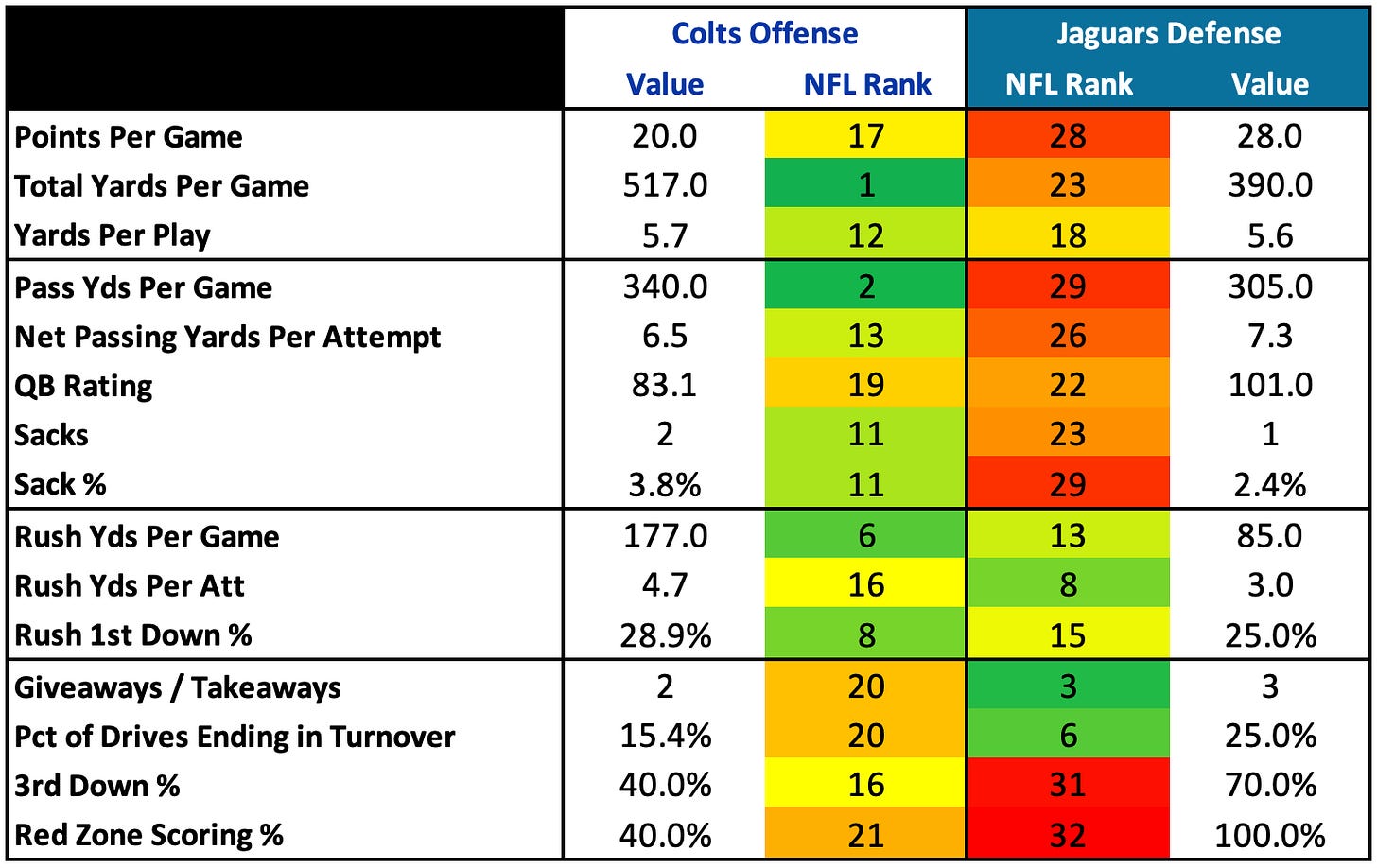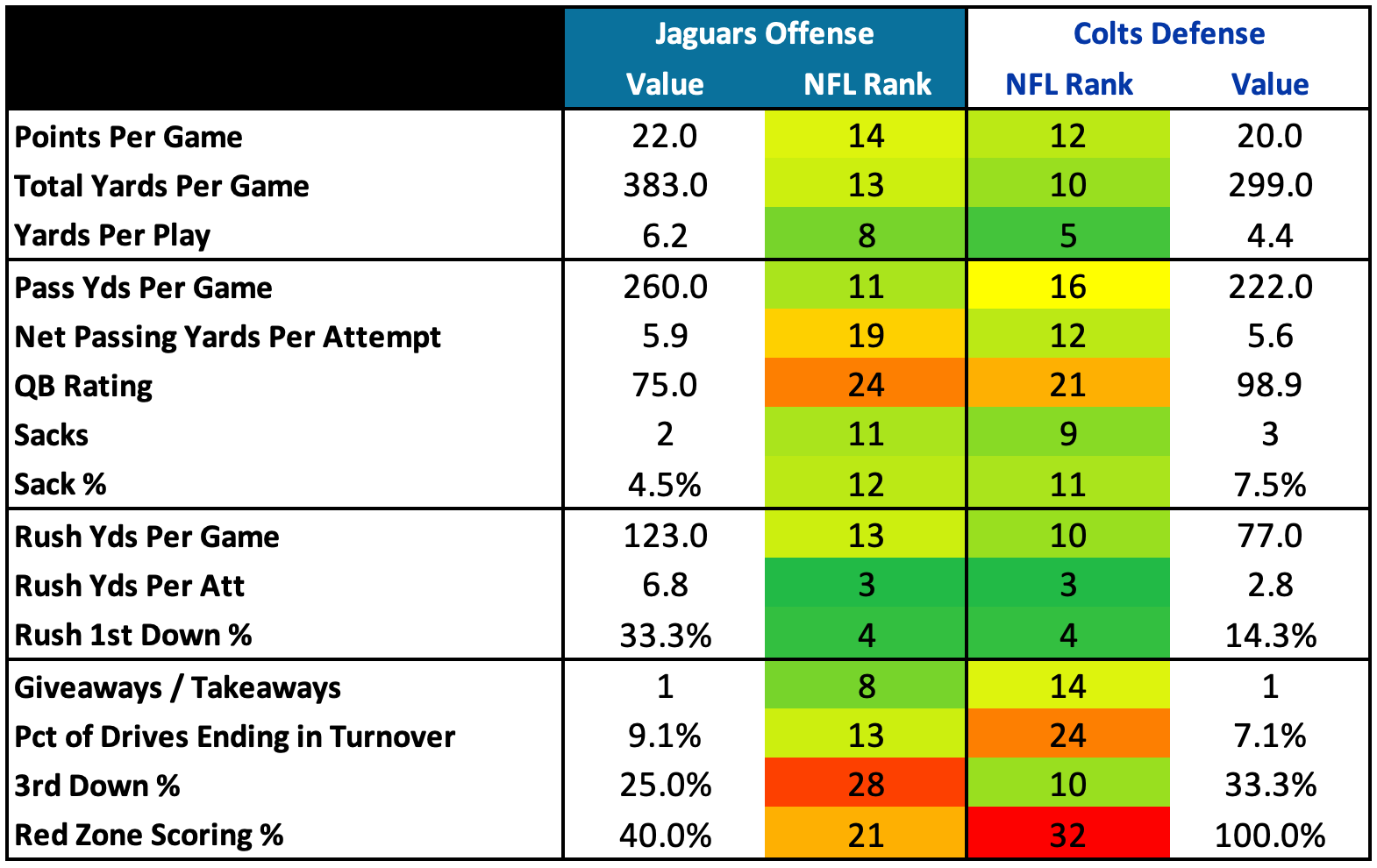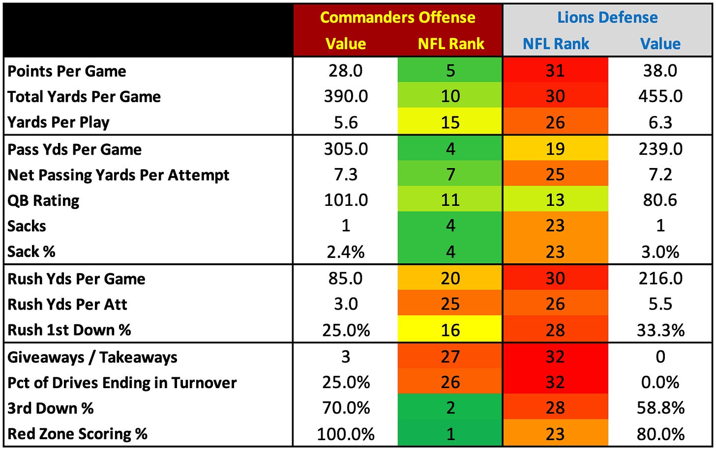 Week 2 has arrived, and as we mentioned last Thursday, we like to provide previews of every NFL game each week based on team stats. Remember, we’re not comparing one offense to another offense, since they’re never on the field at the same time. Instead, we’re taking a look at how each team’s offense matches up to that week’s opponent on defense, and vice versa.