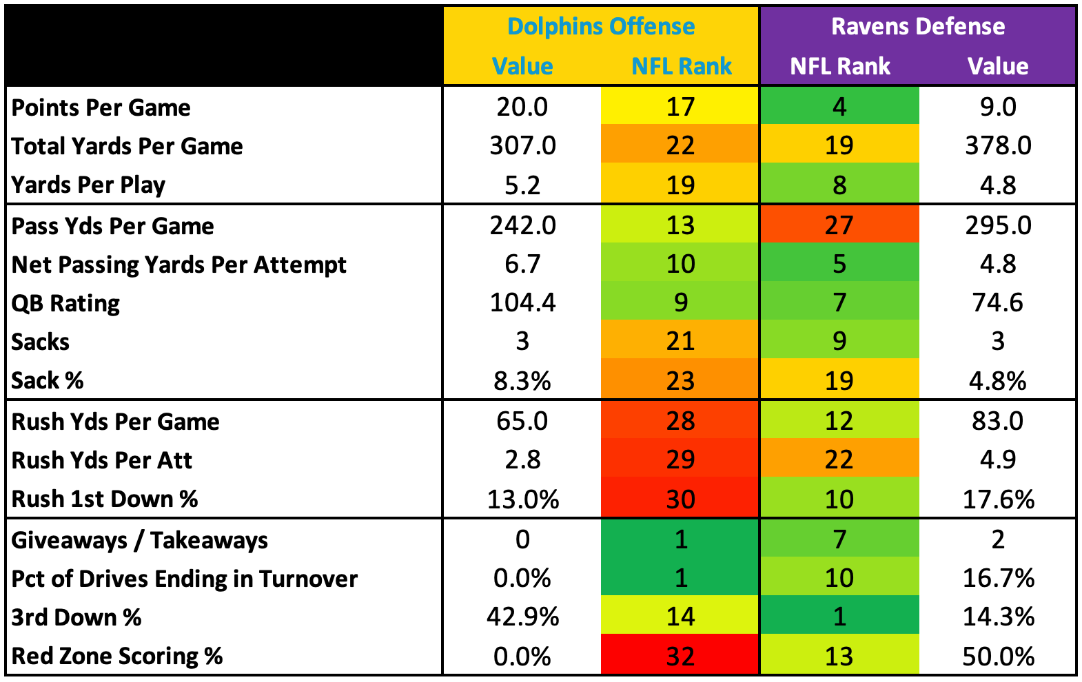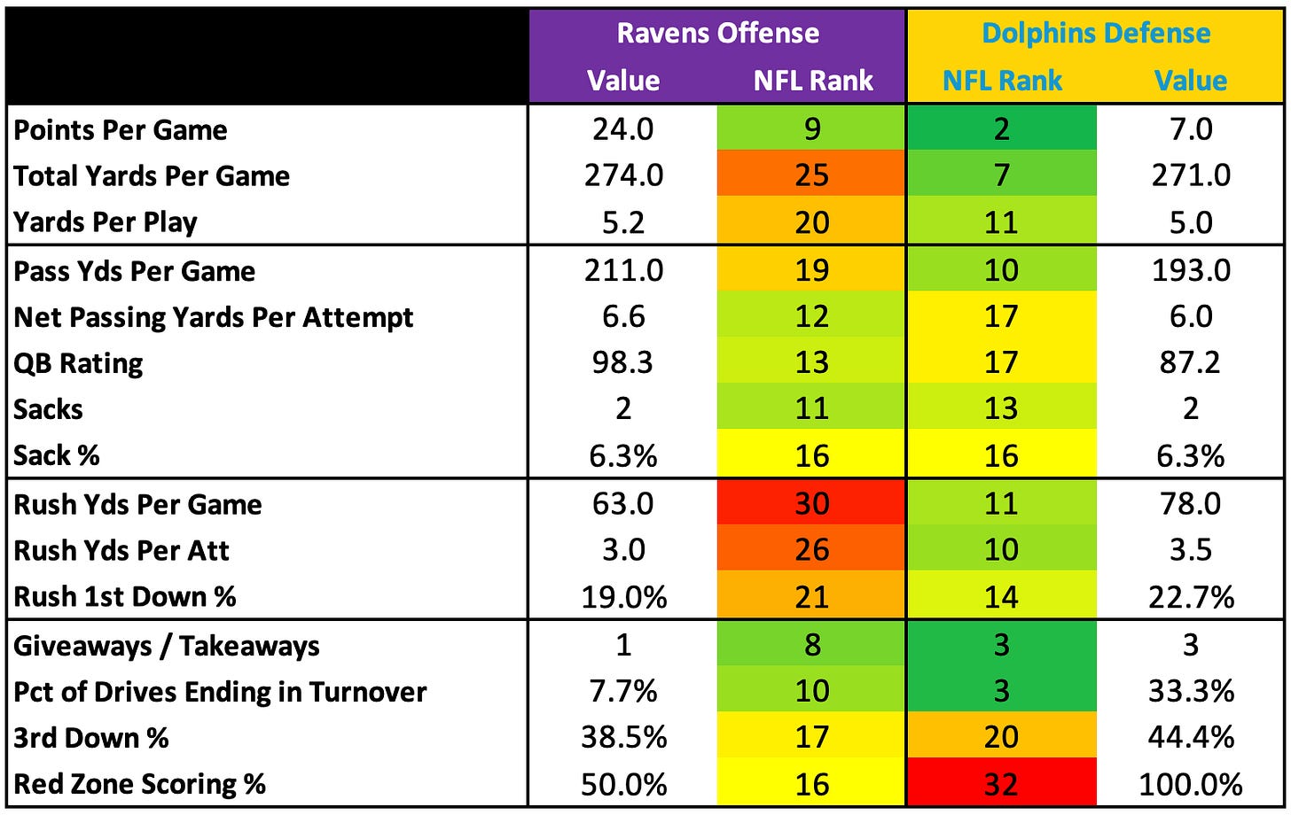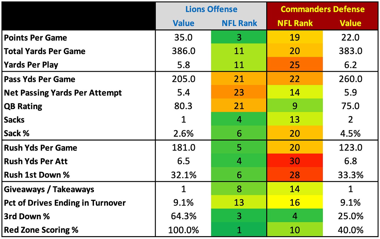 Week 2 has arrived, and as we mentioned last Thursday, we like to provide previews of every NFL game each week based on team stats. Remember, we’re not comparing one offense to another offense, since they’re never on the field at the same time. Instead, we’re taking a look at how each team’s offense matches up to that week’s opponent on defense, and vice versa.