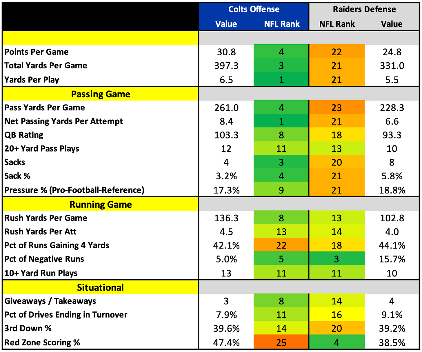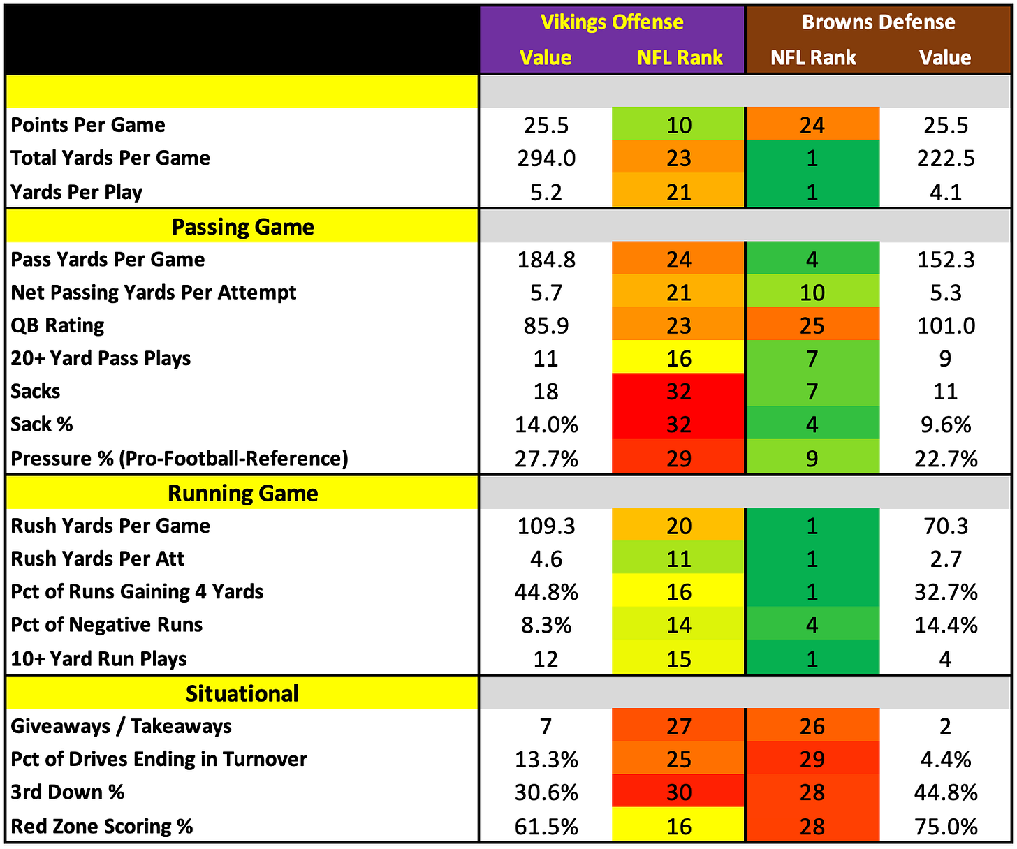How They Match UpHow They Match Up - Week 5Nick KehoeOct 03, 2025∙ Paid131ShareVikings vs. BrownsSubscribeTexans vs. RavensDolphins vs. PanthersShareRaiders vs. ColtsGiants vs. SaintsCowboys vs. JetsThis post is for paid subscribersSubscribeAlready a paid subscriber? Sign inPrevious