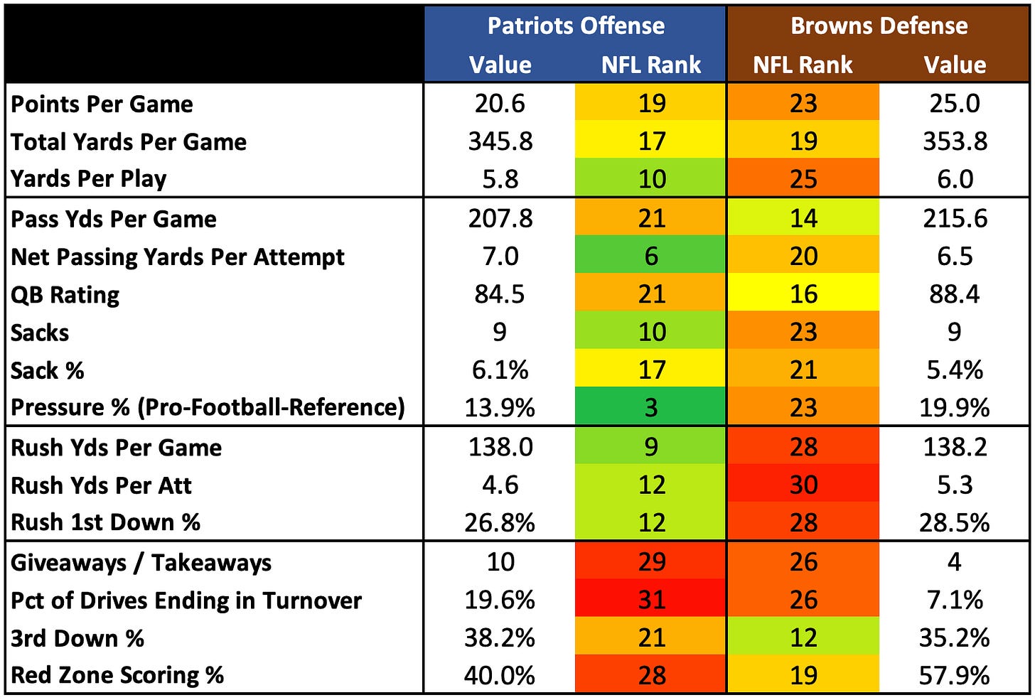 How They Match UpHow They Match Up - Week 6Nick KehoeOct 13, 2022∙ Paid2ShareCommanders vs. Bears49ers vs. FalconsTo see all Week 6 head-to-head matchups, subscribe belowSubscribePatriots vs. BrownsJets vs. PackersBills vs. ChiefsThis post is for paid subscribersSubscribeAlready a paid subscriber? Sign inPreviousNext