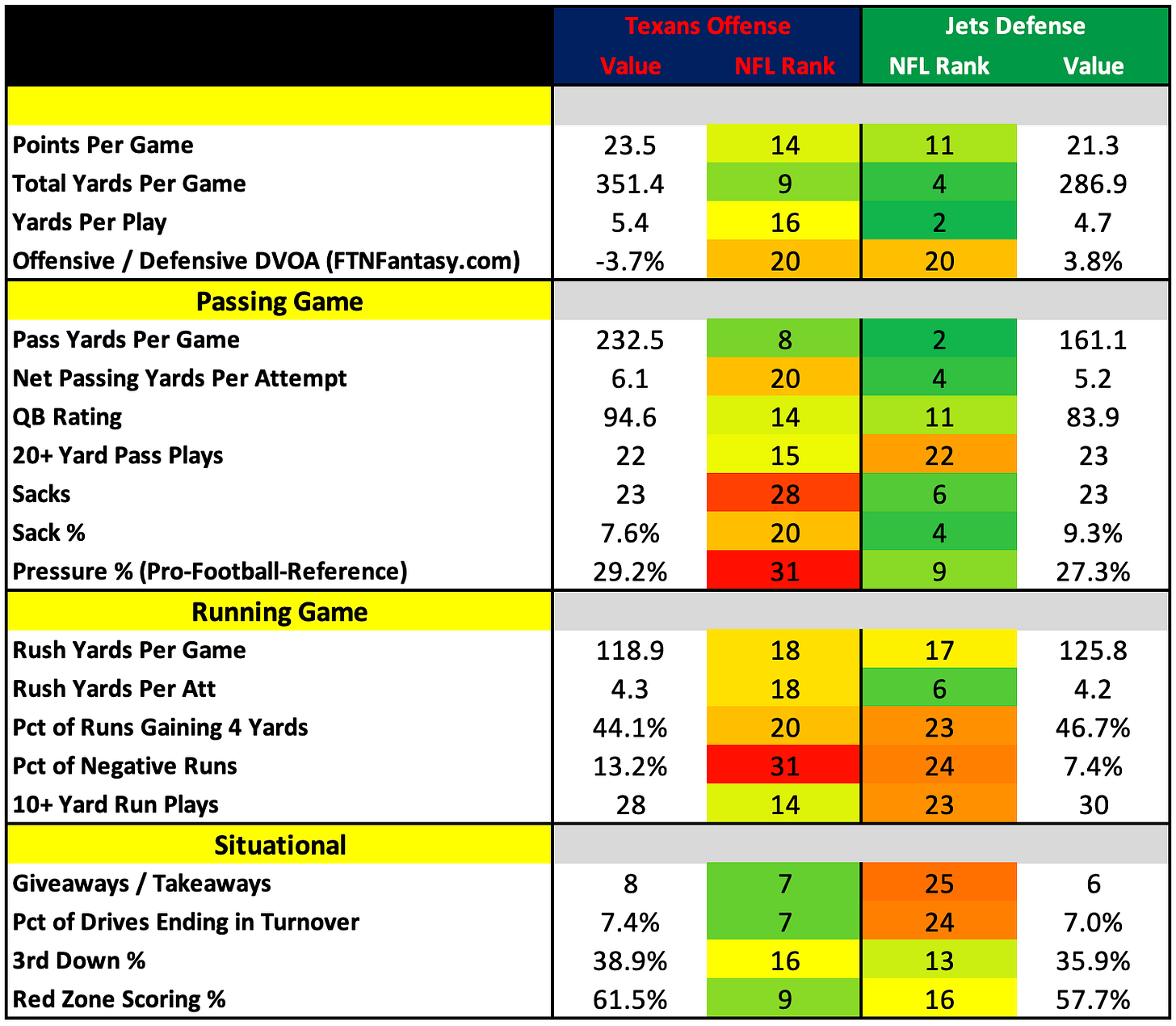 How They Match UpHow They Match Up - Week 9 (TNF)Thursday Night Football (Texans vs. Jets)Nick KehoeOct 31, 202411ShareTexans vs. JetsSubscribeCheck back tomorrow for the rest of the Week 9 games.PreviousNext