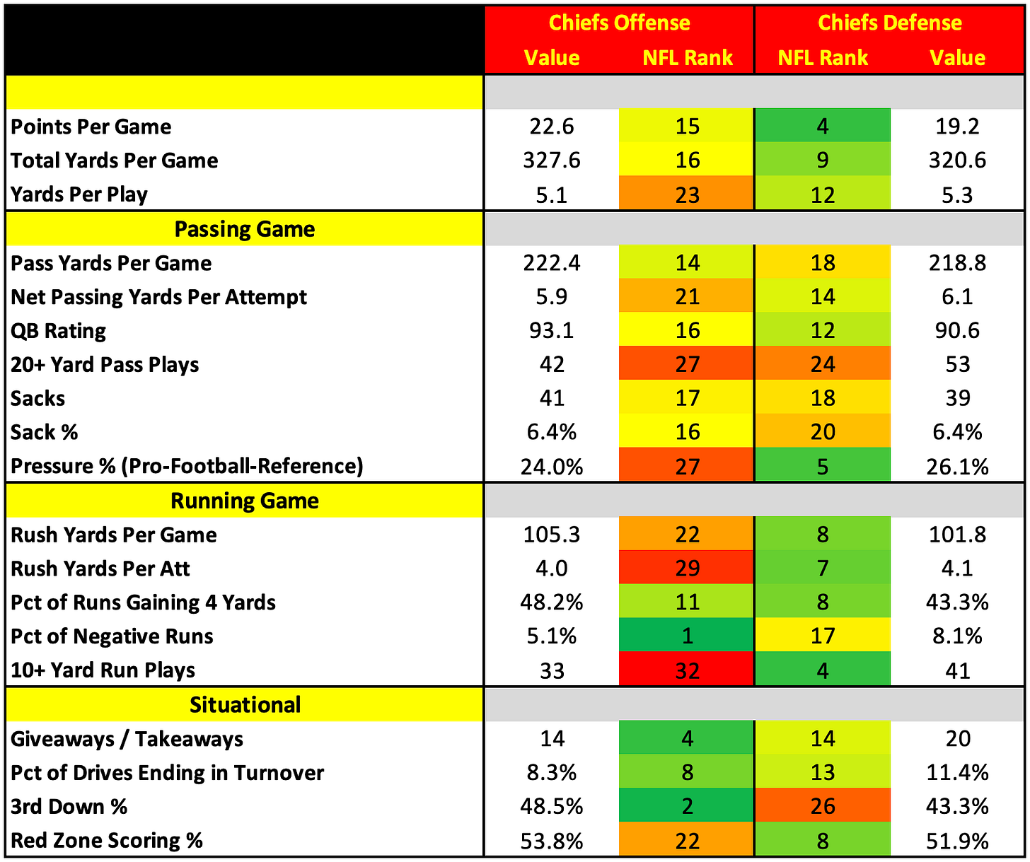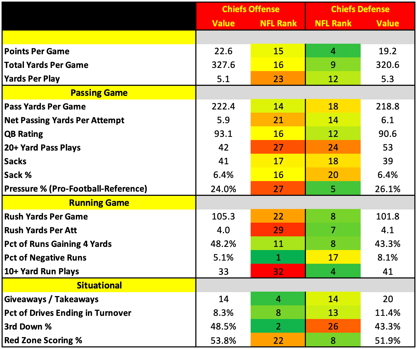 It sounds weird to say it, but the Chiefs really haven’t been that good on offense this season. They were 15th in the NFL in scoring, 16 in total yards, 14th in passing, and 22nd in rushing.