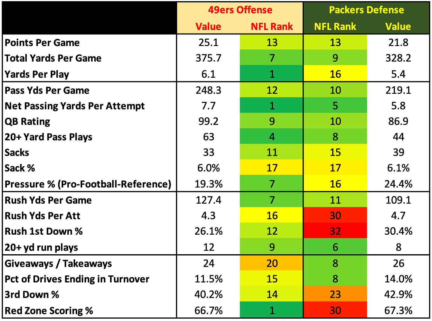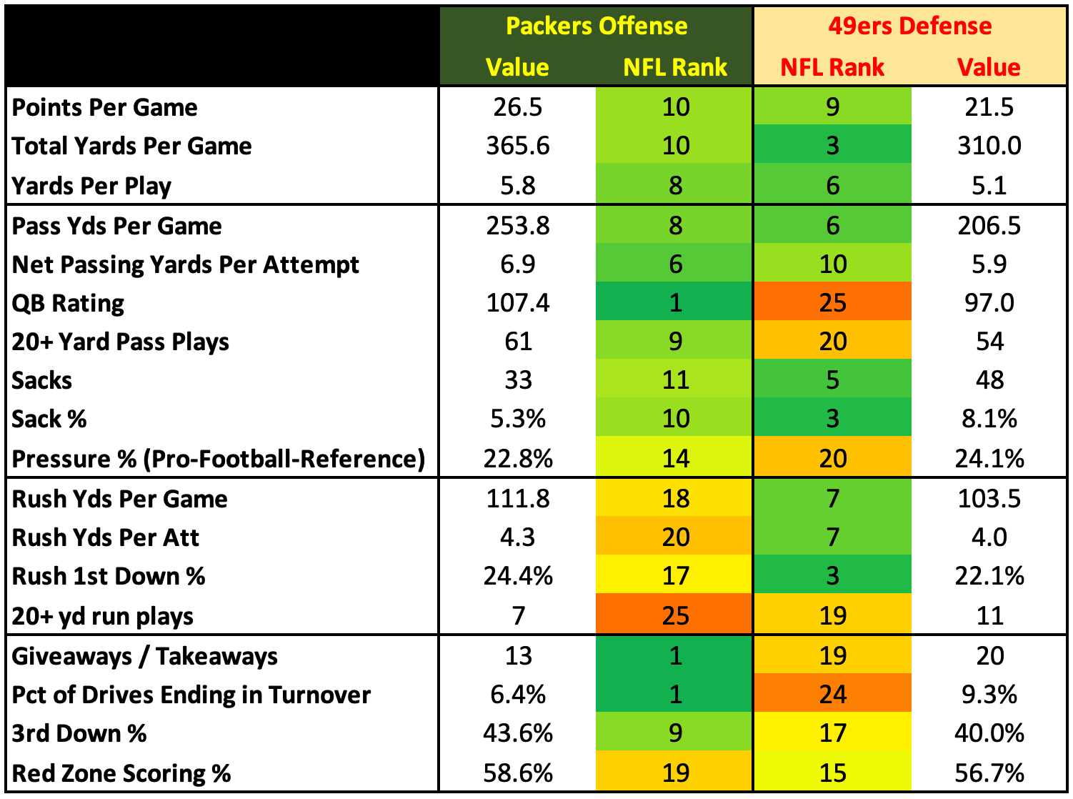 On the other side of the ball, we’ll have the opportunity to see two really good units square off. The Packers have the (should be) MVP under center, and the 49ers have a red hot and physical defense.
