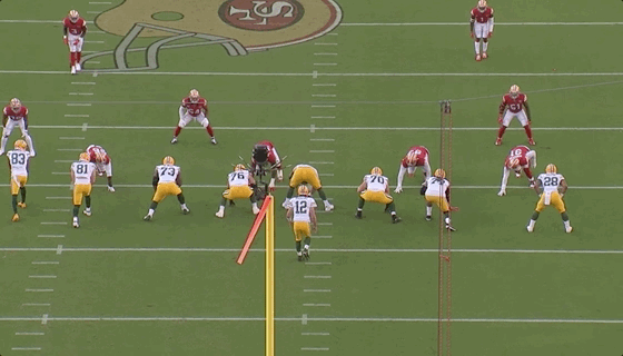 Rodgers is especially aggressive whenever he sees 1-on-1 opportunities. There is always a throw to beat the coverage in 1-on-1 situations, and he took advantage often when he saw them against the 49ers last time: