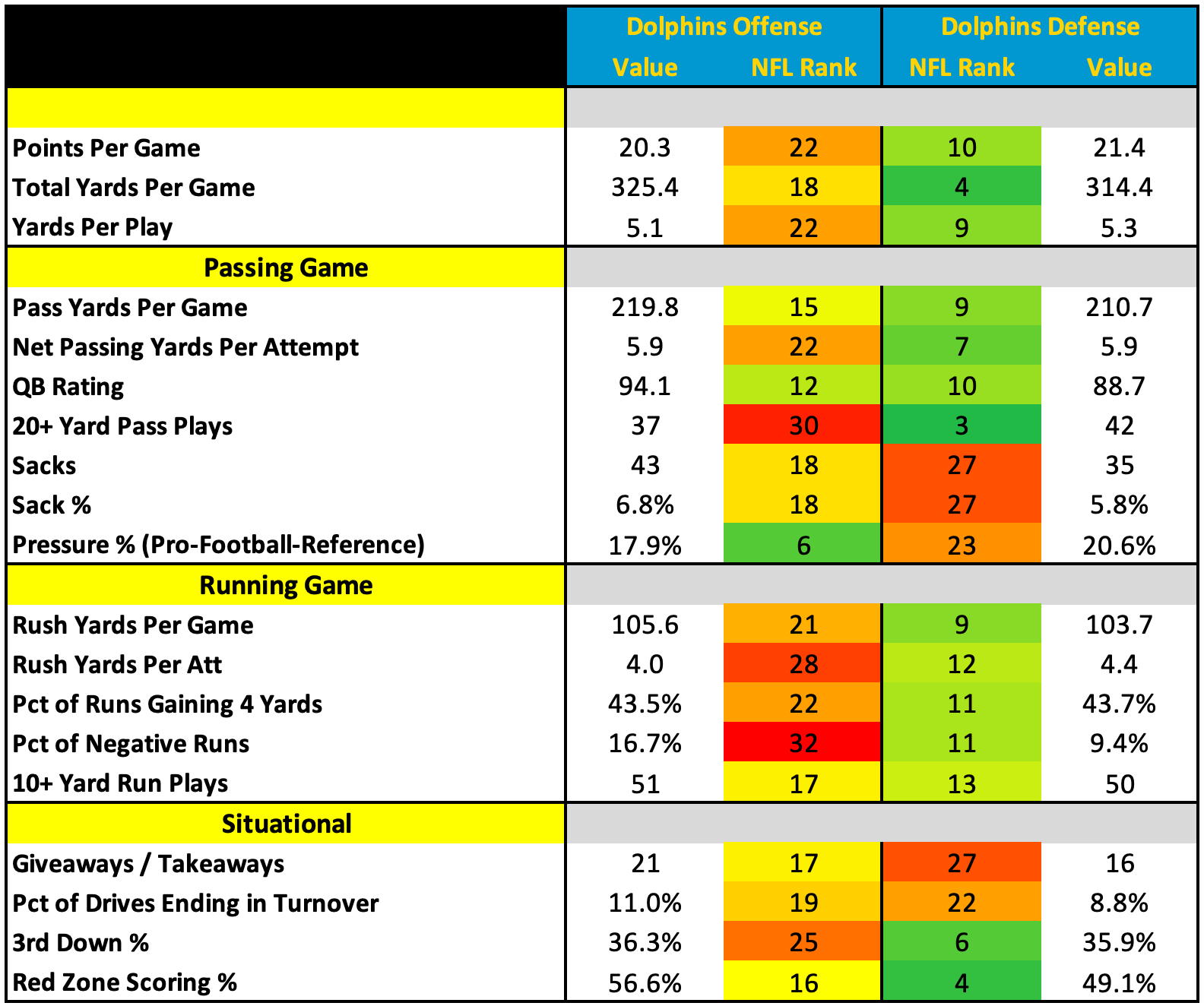 Last season, they went 6-5 with Tua and 2-4 without him, but the discrepancy in points scored was even greater (24.1 to 13.3). The resulting inconsistency of the offense kept the Dolphins from a 3rd straight playoff appearance: