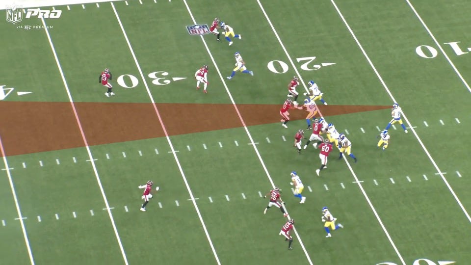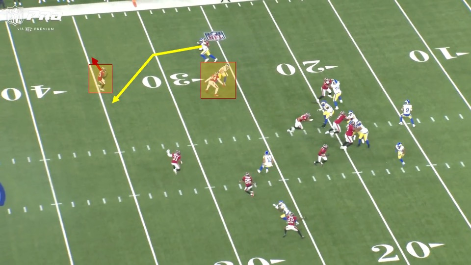 This was a similar concept to the play the Rams had called on Stafford’s no-look pass in the closing minutes of Super Bowl LVI (more on that in a bit).
