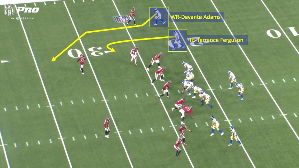 This first example was a 3rd-and-7 on the Rams’ opening drive. You can see the concept Stafford would target illustrated below: