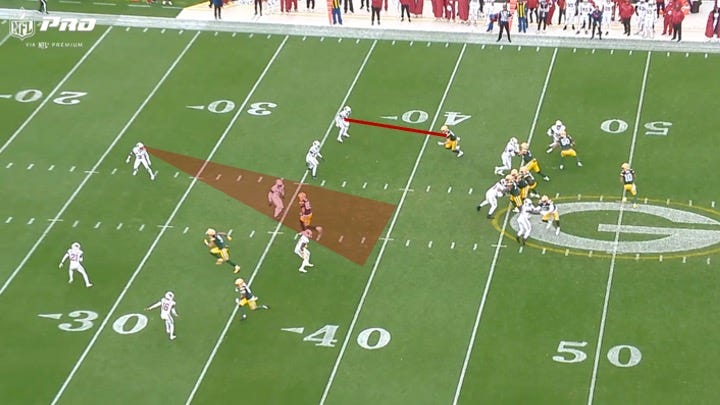 Either way, LaFleur knew he could get the Cardinals into the desired coverage and then take advantage of it with a small tweak. As Jordan Love said after the game, LaFleur “dialed it up on the sideline” and called it two possessions later on the very first play after a 39-yard punt return into Cardinals territory.