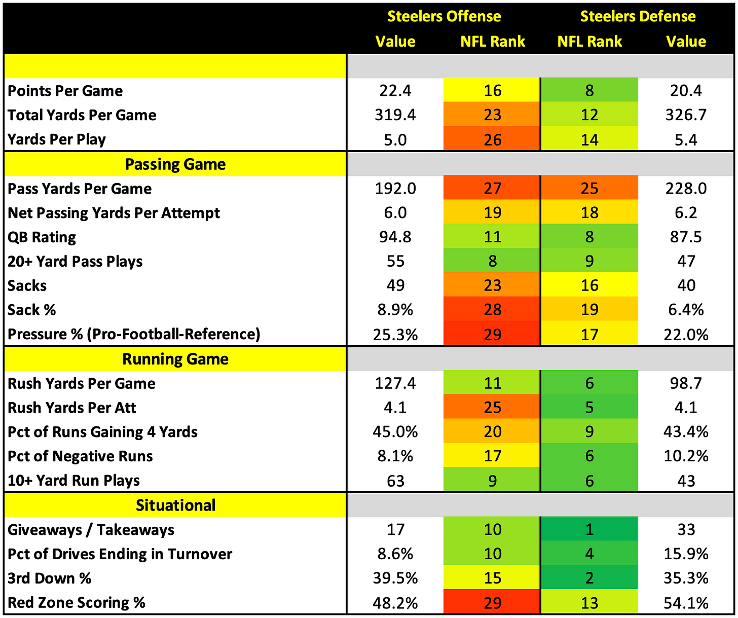 The offense’s season can roughly be cut into thirds. With Russell Wilson battling a calf injury suffered in training camp, the first 6 games were started by Justin Fields. Pittsburgh went 4-2 during that span. However, they averaged just 20.7 points per game and the passing game ranked 28th.