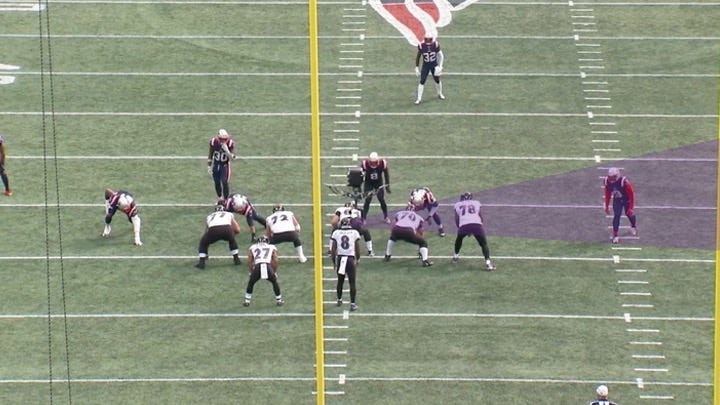 The quarterback’s read is the end man on the line of scrimmage away from the pullers. Here, that was to Lamar Jackson’s right: