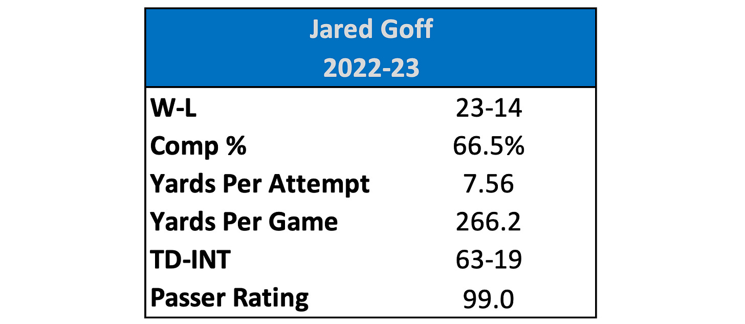 You can also make the same argument about Goff needing a good running game to thrive off of. In fact, during his two best seasons (2018 and 2023), he had his two best rushing attacks, both of which were among the NFL’s best in each of those seasons.