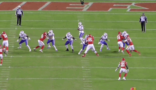 The ups and downs to Allen’s game have kept Buffalo in perpetual 2-steps-forward-1-step-back mode. And over the last year or so, he’s become an increasingly frenetic quarterback. We see less and less of him sitting in the pocket and progressing through his reads systematically. Instead, he’ll often look for his first read, and if it isn’t there, he’ll start scanning the field indiscriminately or look to run. That can lead to some great plays, but it also leads to mistakes like the one above. The end result is inconsistency, which we’ve seen too much of throughout the 2023 season.